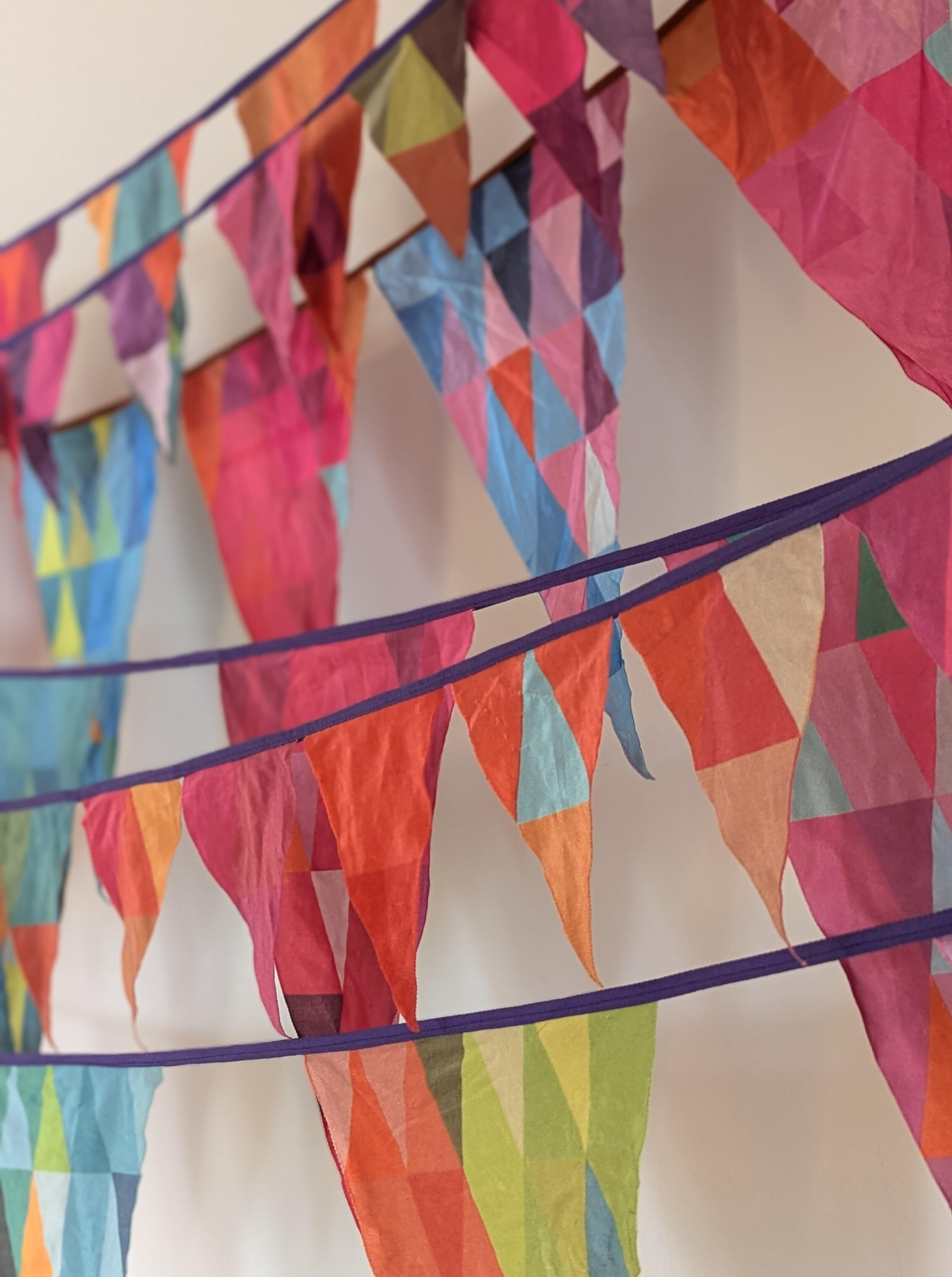 All pieces are made from rescued banners, keeping materials in use and out of landfill.